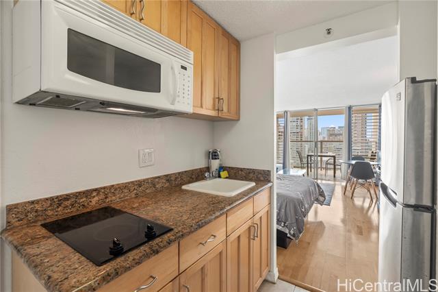 - Charming studio with 1 bathroom, currently operated as a vacation rental, located in the vibrant heart of Waikiki. Just steps from DFS, Royal Hawaiian Center, and International Market Place, this property offers convenience and lifestyle. The generously sized lanai features a table set, ideal for enjoying meals while savoring the Hawaiian breeze and picturesque canal views. Fully furnished, this property is ready for immediate use as a Short-Term Rental. It offers the flexibility to serve as your personal residence during Hawaii visits, to be operated as a vacation rental, or to participate in a hotel program for rental management. Please note that vacation rental operations require a contract with Island Colony Partners.