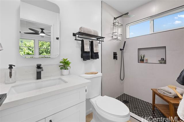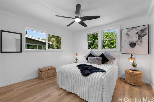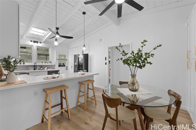 - Welcome to a rare Manoa retreat, where the rhythm of valley rains and the shimmer of morning light create the quiet poetry of the valley. Set on an expansive 19,003 sq. ft. parcel embraced by lush surroundings, this traditional Manoa home with vaulted ceilings has been thoughtfully renovated with a 2023 roof, 200-amp electrical, vinyl windows, newer appliances, luxury vinyl flooring, quartz countertops, and abundant storage, offering a refined yet comfortable modern living experience. Outdoors, a serene island sanctuary unfolds along the valley’s natural contours, framed by mature mango, avocado, coconut, and banana trees on the private yard area beyond the valley’s whispering waters. The gentle flow of Manoa stream, resting well below street level with FEMA waiver, provides a peaceful backdrop that feels worlds away. Here, tranquility meets convenience, just moments from UH, parks, cafés, and town amenities; a place where comfort and the calm of the valley come together in timeless harmony.