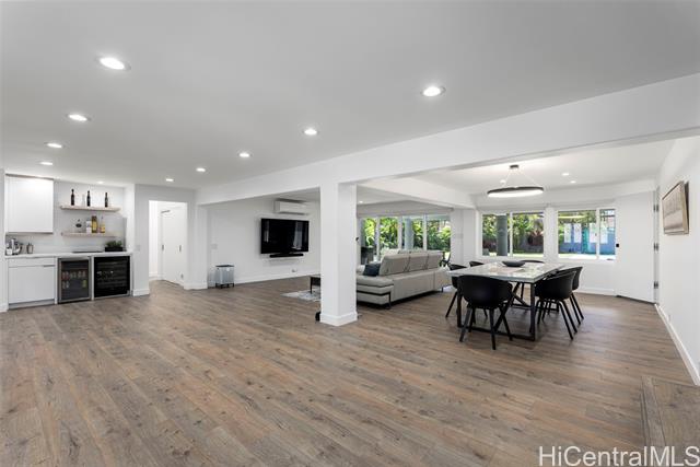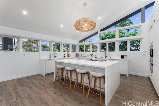 - Discover the epitome of island living in this exquisitely remodeled and impeccably maintained 5 bedrooms/4 bath executive style residence in the highly sought-after Portlock neighborhood. Nestled on a nearly 13,000 sq. ft. LEVEL lot, this home boasts over 4,000 sq. ft. of elegantly detailed living space that seamlessly blends style and functionality. The newly renovated interior features a spacious open floor plan, updated baths and luxury vinyl plank flooring. At the heart of the home is a chef’s kitchen, complete with a large island and Miele appliances. The home is thoughtfully designed to be able to separate 1 bedroom/1 bath/living room with a wet bar and private entry as your ideal guest quarters. The generous lanai overlooks the expansive landscaped and enclosed backyard, perfect for indoor/outdoor entertainment. Plus, it’s just one lot away from a sandy beach, where you can indulge in sun-soaked days. Conveniently located near Koko Marina Shopping Center, Costco, and Hawaii Kai Shopping Center with a variety of shopping and restaurants. This exceptional residence is a must see!