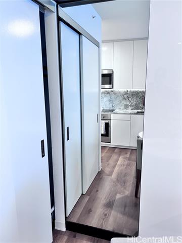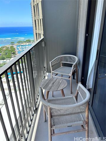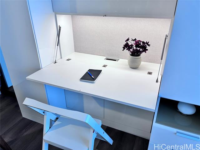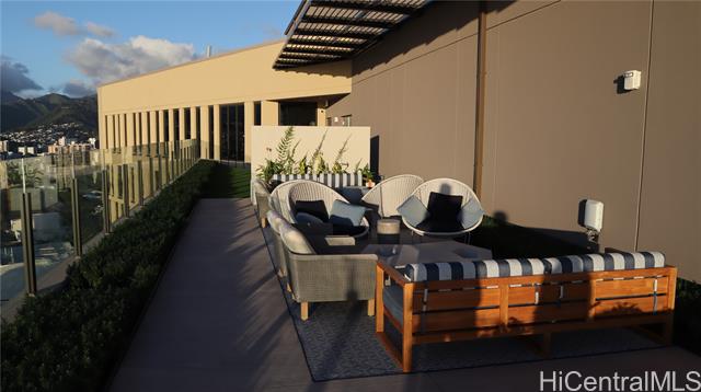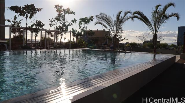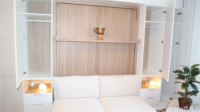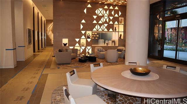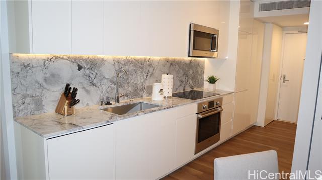 - Live in this high floor fully furnished studio on the preferred cooler side of the building! This very well priced studio with a Queen size Murphy's bed, an attached sofa, a folding dining table, a built-in work center and closets, lots of storage, a furnished Lanai that's all blended in by renowned designer Lauren Rottet, to fit the complete and elegant decor. You can't forget the complete set of kitchen ware with cooking vessels, place settings, silverwares' and more. A central AC system will create a cool climate at your command. This unit is fully equipped for an instant and comfortable lifestyle! The amenities are Resort Style with a Fitness Center, a Yoga Room, a Pool Deck and Jacuzzis surrounded by Cabanas. You will enjoy the stunning ocean and city views from your private lanai as well as panoramic Views from the 42nd floor Sunset Sky Lounge. Just steps away you will find several culinary delights including Cino, Rinka, Onkee, Tonkatsu Kuro, Planted by La-Tour, Dean & DeLuca and more. You will be able to walk to the State's Flagship Whole Foods Market in a few very short minutes as well as the Saturday Kakaako Farmer's Market!