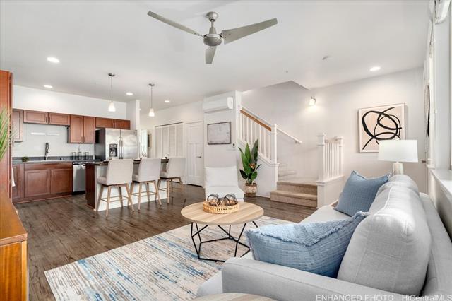 - Welcome to Olino at Mehana! This move-in-ready 3-bedroom, 2.5-bath home features an open layout, beautiful natural lighting, and split AC in every room. Enjoy the convenience of a one-car garage, already equipped with a Tonal smart workout machine, perfect for an at-home gym setup. Located in one of Kapolei’s most desirable master-planned communities, Mehana offers incredible amenities including a community pool, BBQ areas, dog park, scooter park, playground, basketball courts, walking/jogging paths, and the Mehana Activity Center (MAC). This community also offers convenient on-site neighborhood businesses such as hair salons, nail services, wellness and massage studios, and more! Just minutes from Costco, Target, Foodland, Ka Makana Ali‘i, restaurants, beaches, and schools—this home blends comfort, convenience, and lifestyle in the heart of Kapolei.