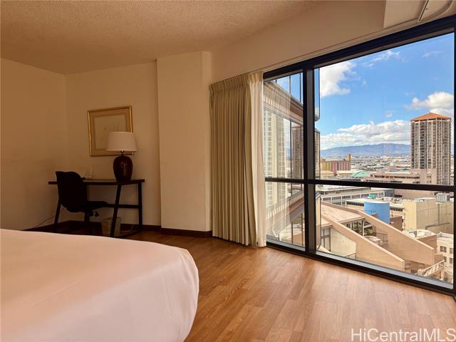 - This Fee Simple 1 bdrm/1 bath/1 pkg unit located in the heart of Downtown Honolulu features floor to ceiling windows and amazing city views. This unit can be used as an owner residence or also as the perfect cashflow investment as either/both a long or short term rental. The location of this unit offers easy convenience to restaurants, shops, entertainment, banks, bus lines and more all within a short walking distance. This building includes a heated pool, 24hr security, a large community laundry space if needed, 5 large efficient elevators, and assigned/secured covered parking stall. The Monthly maintenance fee includes cable TV, hot water, internet service, sewer, water. Unit comes fully furnished with everything included in pictures and/or what is seen at showing. The unit is to remain in the hotel pool through the listing and can still remain after transfer of title. Showings of the unit are available between guest occupancy or through a scheduled appointment.
