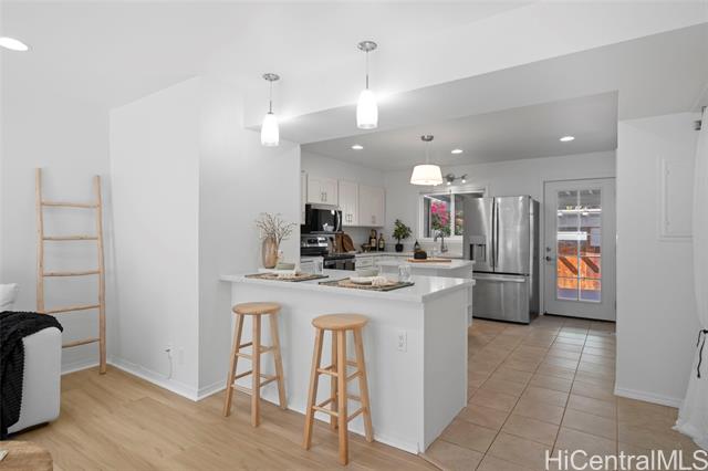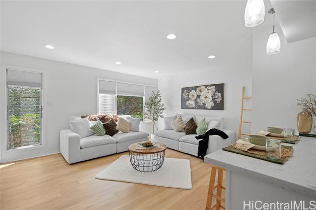 - Tucked away in the serene Mariners Valley of Hawaii Kai, this charming home lives like a private retreat. Each morning, sunlight dances across the new vinyl plan floors, still glowing from the 2013 renovation and fresh paint. Start your day on the covered lanai, soaking in the cool valley breeze and peaceful surroundings. Afternoons invite you to unwind in the sparkling pool -- a peaceful sanctuary to unwind and reset. As evening settles, visit the nearby park where dogs play and neighbors connect. Host lively gatherings in the spacious downstairs living area, then retreat to the cozy, tranquil bedrooms upstairs for a restful night. In this gentle, pet-friendly community, life moves at the perfect unhurried pace. Beginning January 2026, maintenance fees decrease to $762.79 and the property remains fully insured, offering comfort, ease and confidence for years to come.