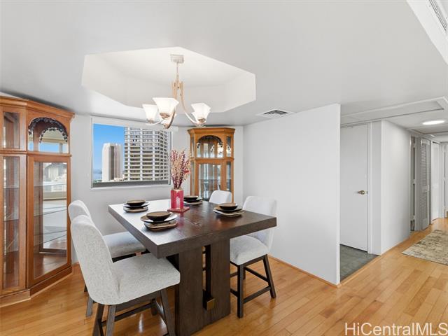 - Live the Waikiki lifestyle with ease - where spacious living meets walkability, convenience, and comfort. This iconic building places you steps from some of the best green spaces on Oahu while keeping you fully immersed in the heart of the city. Whether it's shopping, dining, the beach, or the energy of Waikiki nightlife, everything is within reach, making this home the perfect blend of tranquility and urban living. This penthouse-level unit features a remodeled kitchen and primary bath, positioned on the preferred Diamond Head side of the building with partial ocean views overlooking Fort DeRussy Park. Two parking stalls and two storage boxes located right outside the door add everyday convenience. This is a leasehold property with a long lease secured through 2069. Property Went Live January 12th, 2026. Was in Coming Soon January 1,2026 was inputed wrong. That's why the CDOM is showing 10Days.