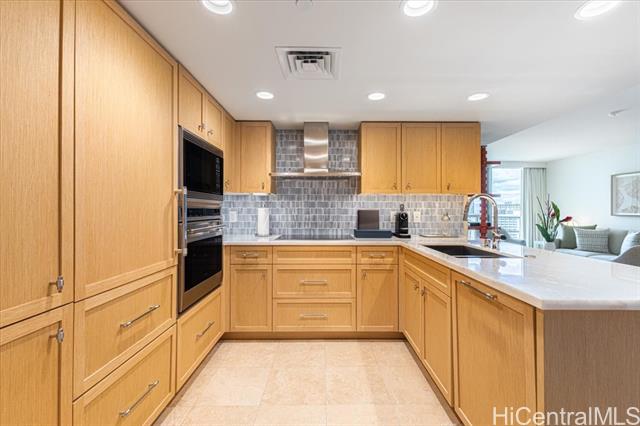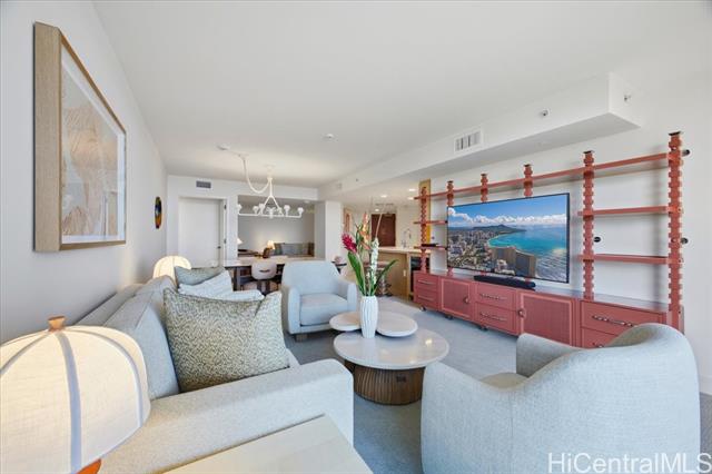 - Set within Ka La‘i Waikiki Beach, LXR Hotels and Resorts, this refined condo residence offers elevated island luxury just steps from Waikiki Beach and Kalakaua Avenue. Currently undergoing a comprehensive renovation, Ka La‘i is being reintroduced as one of Waikiki’s premier addresses. Residence 2015 is a beautifully renovated one bedroom plus den spanning over 1,100 square feet, a rare scale for Waikiki living. Positioned one residence in from the ocean view corner and one building back from the shoreline, the home enjoys unobstructed west facing ocean and sunset views across Fort DeRussy Park. Floor to ceiling glass anchors the living space, creating a seamless indoor outdoor connection. Two private lanais extend daily living for morning coffee, sunset cocktails, and trade winds. The flexible den offers versatility for guests, work, or media. The residence features a generous kitchen, in unit washer and dryer, and spa inspired bath with a deep soaking tub. Offered within a full service luxury resort, this is an exceptional opportunity to own a spacious, turn key residence in one of Waikiki’s most desirable locations.