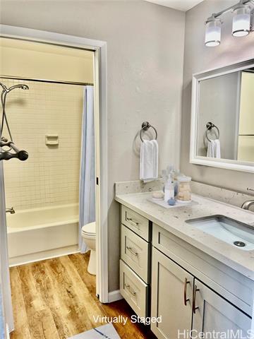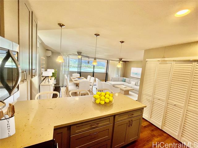 - A beautiful 3 bedroom 2 bath unit to call home that is a GREAT INVESTMENT, A VALUE THAT IS HARD TO BEAT, Incredible opportunity for Military Veterans, Active Duty or ANYONE reaching for their dream home. NUMEROUS upgrades IN EVERY ROOM, stylish kitchen, Lead Glass Transom to 3 Bedrooms, 2 Bathrooms, custom bedroom doors, each with smart split AC & Plantations Shutters. Great Room also includes Smart Split AC, Custom Plantation Shutters on a track, Corner Hutch, covered lanai with Tiki Bar Cabinets & Custom Etched Tiki Glass doors, 2 assigned parking, pet friendly on a single level. Every view is breathtaking whether it is the views from the kitchen, living room, lanai or primary bedroom it IS stunning ocean views. Nothing is retouched by photoshop. The HOA fee is LOWER than most, covers MORE than most including some monthly condo expenses. Endless amenities, safe Active community has 3 Swimming Pools, Saunas, Tennis Courts, Pickle Ball Courts, Walking & Jogging Paths BBQ, Car Wash, Cabana Club House, 24 Hour Security, Resident Mgr. Convenient to Kbay, other Military Bases, Big Box shopping throughout the island via Like Like, Pali or H3
