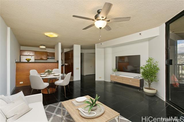- Discover an exceptional opportunity to own a comfortable residence in the heart of downtown Honolulu- all at an attractive price point. Just steps away from major corporate headquarters, renowned restaurants, shopping and the cultural charm of Chinatown, this location offer unmatched convenience. This thoughtfully designed unit features two spacious bedrooms, floor-to-ceiling windows that flood the space with natural light, and a covered lanai- perfect for unwinding after a busy day. The building comes with a swimming pool, hot tub, and BBQ area by lush greenery, along with a pet-friendly policies and 24/7 security space for peace of mind.