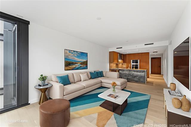 - Welcome to elevated luxury living at Victoria Place, ideally situated in the heart of Ward Village. This highly sought-after stack features the largest one-bedroom floor plan in the building and includes a versatile den that can be used as additional storage, a home office, or customized to suit your lifestyle. The amenities are truly top-notch, beginning with a stunning lobby that sets the tone for an exceptional living experience—from arrival to the beautifully designed residences and resort-style lifestyle offerings. Enjoy multiple swimming pools, spa-inspired locker rooms with sauna, steam room, cold plunge, and hot tub, as well as valet and concierge services. Additional features include a private theater and state-of-the-art fitness facilities, creating a setting where you never need to leave home unless you choose to. This private lifestyle enclave offers everything you could need, with world-class beaches at Ala Moana and Waikiki just minutes away. Don’t miss this opportunity to own a piece of Honolulu. Select photos were virtually staged.