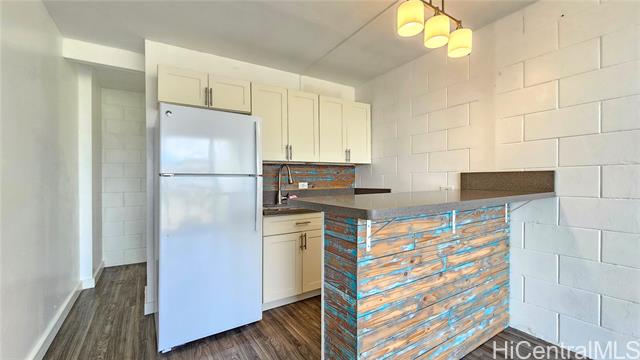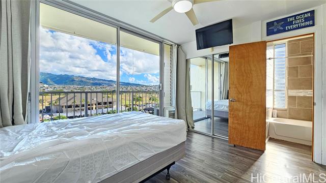 - Experience flexible, modern Waikiki living in this recently renovated, flexible-floorplan unit at Pacific International. This unique layout functions as a spacious 1-bedroom with two full baths or can be used as two separate studios with individual entrances—an excellent option for rental income, guests, or multigenerational living. Wake up to unobstructed views of the Koolau Mountains, Ala Wai Golf Course and canal. The updated interior features upgraded kitchen cabinets with granite/quartz countertops, a gas stove, and stylish finishes. Both bathrooms have been refreshed with new vanities, tubs and tile. Luxury vinyl plank flooring and fresh paint give the home a clean, contemporary feel. Window AC units provide cooling. Pacific International offers secured building entry and community laundry. Move-in ready and income-ready, this residence places you in a prime Waikiki location within easy reach of world-class dining, shopping, beaches and island conveniences.
