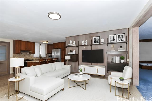 - Welcome home to Ahuimanu! Discover this recently renovated 3-bedroom, 2-bath residence tucked away on a peaceful cul-de-sac. The open, airy layout includes a versatile bonus room—perfect for relaxing while enjoying the cool Kaneohe breezes. Upgrades feature stainless steel appliances, sleek cabinetry, beautiful countertops, and durable vinyl plank flooring. The separate washroom and storage area offer the convenience of its own entry, ideal for a home office or multi-generational living. With no neighbors behind, the backyard provides a serene and private setting, framed by the stunning Koolau Mountains. This inviting island home exudes warmth and is a must-see for anyone looking to experience the comforts of Windward Oahu living!