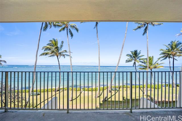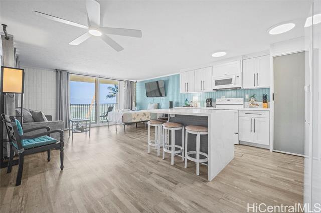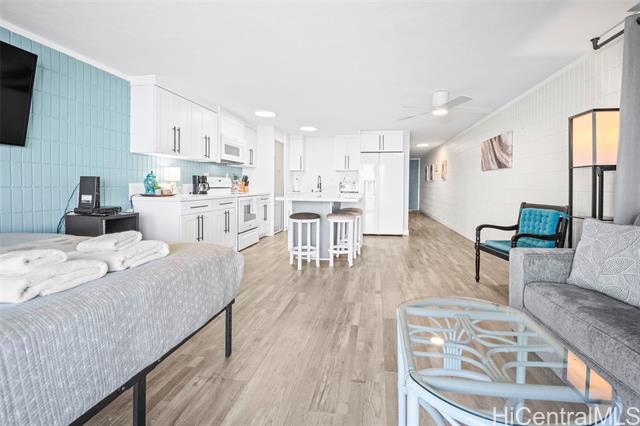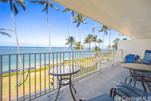 - Oceanfront living on Oahu’s Windward Coast. This beautifully renovated 1-bed, 1-bath residence is located along a secluded stretch of white sandy beach in Punaluu and offers stunning ocean views and memorable sunrises. The shoreline in front of the property is known as a nightly resting area for Hawaiian green sea turtles, creating a truly special coastal setting. This unit offers more interior living space and a larger lanai than most 1-bedroom units in the complex, providing a bright and open layout. Fully renovated in 2023, upgrades include furnishings, appliances, cabinetry, and modern finishes throughout. The unit includes one assigned parking stall. The oceanfront community features resort-style amenities including a swimming pool, fitness center, BBQ area, and direct beach access. The unit is currently operated as a short-term rental. Buyers are advised to perform their own due diligence regarding zoning, use, permitting, and applicable regulations. The building is in the last expected year of a multi-year renovation expected to be completed end of 2026. HOA fees beginning January 2026 are $1,598 per month, with a 2026 renovation construction assessment of $2,238 per month.