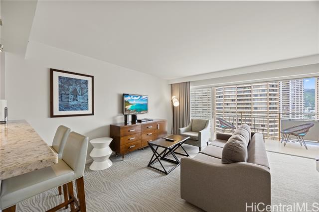 - Ilikai Hotel #2223 – Higher-floor hotel condominium with open city-side views and good natural light. This unit is currently operated within the hotel-managed rental program with professional on-site management. Features a functional open layout with a full-size kitchen, suitable for hotel use and owner stays. Located in the iconic Ilikai with convenient access to Ala Moana Beach Park, Ala Moana Center, marina, dining, and Waikiki.