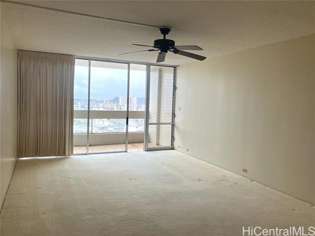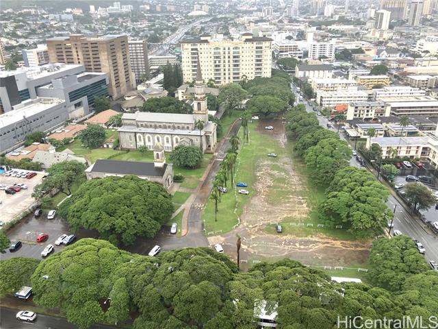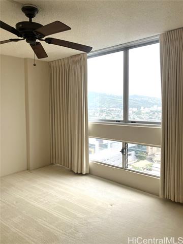 - High floor with fabulous views of Diamond Head, city, ocean. Overlooks Central Union Church. Building has recently completed its plumbing project and SELLER HAS PAID OFF THE ASSESSMENT! Brand new range and range hood. Drapes just 2 years old. Plumbing and electrical fixtures inspected and cleared. 2 new toilets. Natural light brightens the unit. Lot of storage in hallway. Central location to schools, hospital, churches, shopping--all the benefits of living in town! Lots of guest parking and nice amenities, including a heated salt water pool, meeting room, BBQ area, 24-hour security, bike rack, surfboard storage. New pool/pool deck/pool furnishings. Meeting/party room newly refurbished Maintenance fee is for 2026 (increase of 4%). VA-approved. Sorry, not pet-friendly. If your buyer is looking for a good location/convenience, space, storage, 24/7 security patrol, useful amenities, call to see this 2/2!