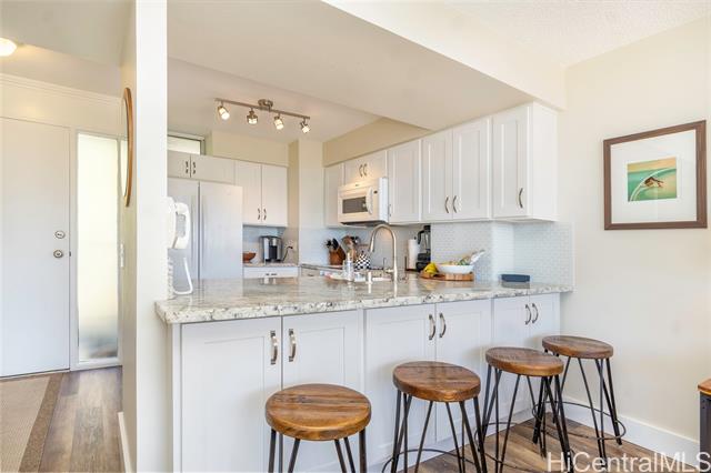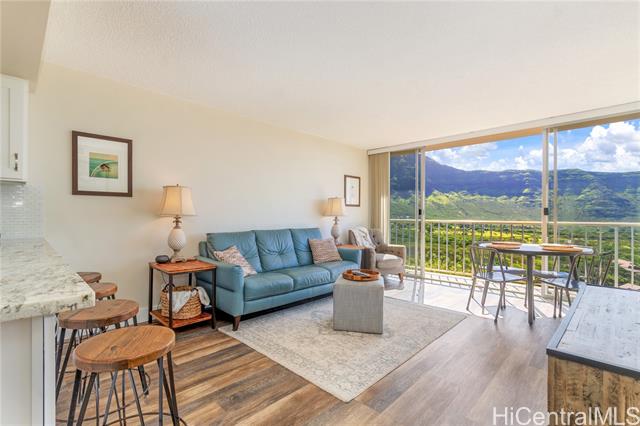 - Welcome to Makaha Valley Towers Unit 1315, a beautifully remodeled 1-bedroom, 1-bathroom unit that offers the perfect blend of comfort, style, and breathtaking views. This thoughtfully designed unit features a custom-built Murphy bed, maximizing space and functionality. The kitchen is a true highlight, complete with modern finishes and high-end appliances, perfect for preparing amazing meals. Relax and enjoy sweeping views of the majestic mountains and the sparkling ocean, providing a serene backdrop to your daily life. Some furniture is included in the sale, making this the perfect move-in-ready property. Whether you’re seeking a peaceful retreat or a stunning investment opportunity, this unit offers an exceptional lifestyle in one of Oahu’s most desirable locations. Don’t miss the chance to make this dream home yours!