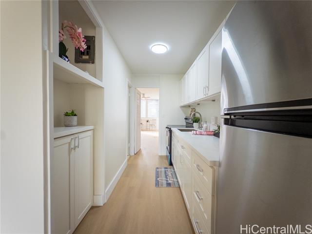 - Fully remodeled 1 bedroom 1 Bathroom leasehold Coop with a tree-top, palm-swaying view. This home is a true blank canvas with clean, modern, finishes throughout. Custom Kitchen and bathroom, white soft-close cabinetry, quartz countertops, extended kitchen counters, abundant cabinetry, and a little breakfast nook or workstation making the most of every inch. New luxury vinyl flooring and fresh interior paint. The bathroom also includes a beautiful tiled shower. Tropical Lush Grounds. Gated entrance, fob key access, security cameras, and on site security. Close to the Beach, restaurants, shopping. Bus lines nearby, Open BBQ area and grill your fav food. The roof top features the community laundry facilities. open air lobby, security patrol, Food Pantry grocery, Bakery, US Postal Service across the street. General mgr. This property has a long lease with fixed increases until 2048. Total Mo operating fees for 2025 are $1,474.40 (Main Fee $689.70, Cable TV $53.61, Lease rent $634.09, Property tax $97.00 *Please see supplements for Buyers New Member app process. Buyers need to meet minimum qualifications to purchase**