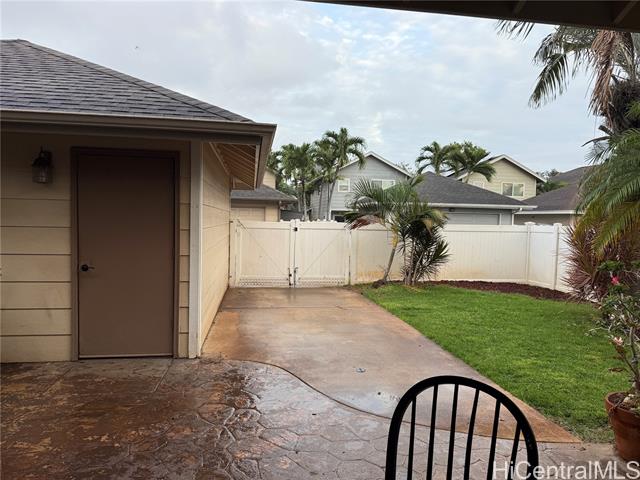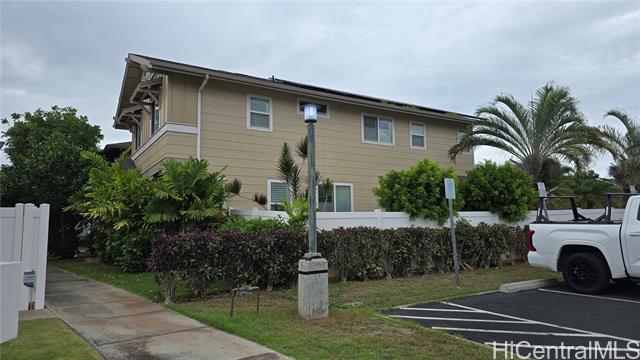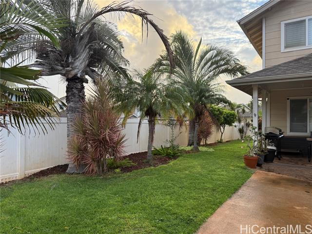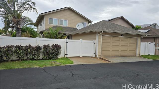 - Beautiful and well-maintained 4-bedroom, 2.5 bath single-family home in Ocean Pointe and awaits its new owner. Upgraded luxury vinyl plank floors, granite countertops and plantation shutters and much more. This home also has a 26 panel Leased (fully paid) photovoltaic that expires in 2033, so no additional monthly payment. Huge landscaped yard and large covered lanai to hang out and entertain friends and family. Detached two-car garage with the third parking stall and home adjacent to guest parking. Minutes to Wai Kai, Laulani Shopping Center, restaurants.