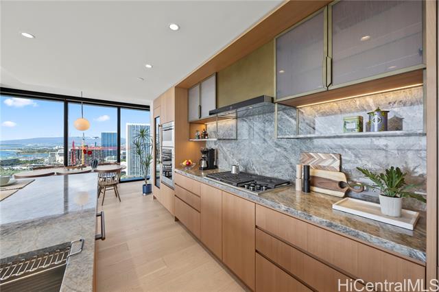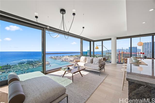 - Welcome to an unparalleled sanctuary of sophisticated living in the highly coveted '01' stack at Victoria Place. As the most premier front-row residence in Ward Village, this exquisite home offers forever-unobstructed, panoramic of the Pacific Ocean, Kewalo Basin Harbor. This 3bedroom 3bath, every inch of this residence has been curated with an impeccable eye for design. Sold fully furnished with high-end, bespoke interior pieces, the home radiates a sense of "quiet luxury" that perfectly complements the floor-to-ceiling vistas. The gourmet kitchen is , custom cabinetry, and elegant stone countertops. The primary suite is a private retreat, positioned to capture the first light of dawn over the ocean, complete with a spa-like ensuite bathroom and generous walk-in closet space. Victoria Place is renowned not just for its architecture, but for its world-class amenities. Residents enjoy exclusive access to the private Pool, sunrise and sunset infinity pools, private theater, fitness center, and lush tropical gardens. '01' unit represents the pinnacle of Honolulu’s modern luxury. Don't miss this perfect paradise home.