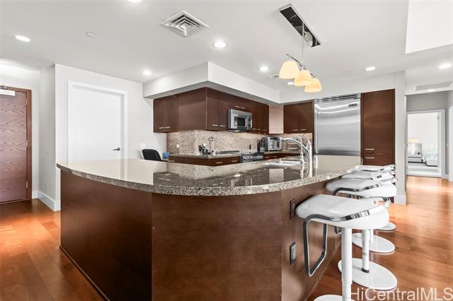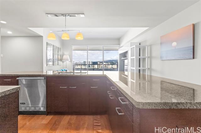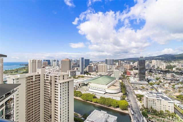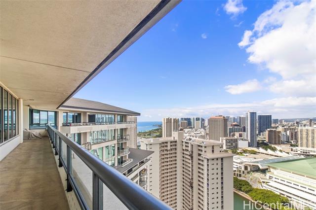 - ONE-OF-A-KIND 3-BEDROOM + DEN, 2-BATH PENTHOUSE AT THE ICONIC ALLURE WAIKIKI. This stunning penthouse features a spacious covered 363 sq. ft. lanai with mountains, city lights, and partial ocean views. A flowing floor plan showcases high-end finishes throughout, including hardwood floors, Viking appliances, and a large pantry. The primary suite includes a generous den/office area, walk-in closet, and soaking tub. Enjoy entertaining in the expansive open kitchen with abundant cabinet and storage space, seamlessly connected to the living and entertaining areas. Two conveniently located parking stalls close to main entrance. Resort-style amenities include an infinity pool with poolside cabanas, whirlpool, fitness center, and party room. Ideally situated at the Gateway to Waikiki, just minutes from Ala Moana Center, parks, beaches, and an endless selection of dining, shopping, and entertainment options that Waikiki has to offer.