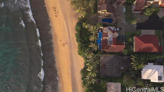 - Live the Dream at Sunset Point! Experience Hawaii lifestyle and endless sunsets in this beautiful beachfront home, fronting one of the most iconic surf breaks in the world. With direct access to Sunset Beach and unobstructed views of the legendary waves at Backyards and Sunset Point, you'll have a front-row seat to world-class surfing from your lanai. Tucked within the private, gated community of Sunset Paumalu Estates, this 2,509 sq ft home sits on a 5,208 sq ft lot with over 60 feet of beachfront. Enjoy stunning sunsets, a lush beachfront yard with native plants, and a protective reef that helps preserve the shoreline. Whether you're watching pros charge the winter swells or enjoying tranquil summer beach days, the ocean is always the centerpiece. Sold "as-is". One of the best beachfront values on Oahu's North Shore. Opportunity to customize your dream home. Tax records reflect 3 bedrooms 2.5 baths. Buyer to conduct due diligence.