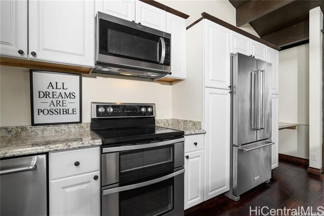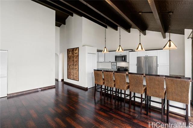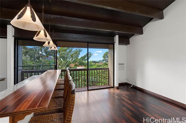 - Perched on the top floor in a gated, tropical oasis, this home delivers the kind of turnkey, designer-updated living that feels like a daily vacation. This rare corner end unit has no neighbors above and features your own private stairway entrance, creating the privacy and “single-family” vibe buyers love. Inside, you’ll find vaulted ceilings, stylish upgrades throughout, and ocean views. The spa-inspired bath is a standout with a free-standing soaking tub, and the home is loaded with practical peace-of-mind upgrades like hardwood flooring, upgraded kitchen, copper plumbing and an automatic water shut-off system. Washer and dryer included, because convenience matters. Step outside and lean into the resort lifestyle: tennis courts, basketball, swimming pools, and a whirlpool, all surrounded by lush, well-maintained landscaping. World-class beaches, surfing, and diving are just minutes away.
