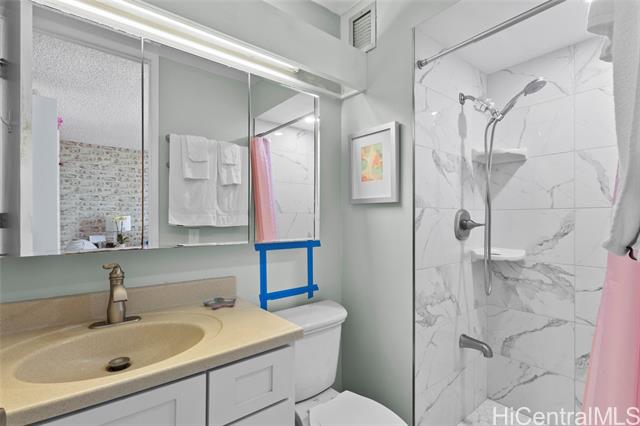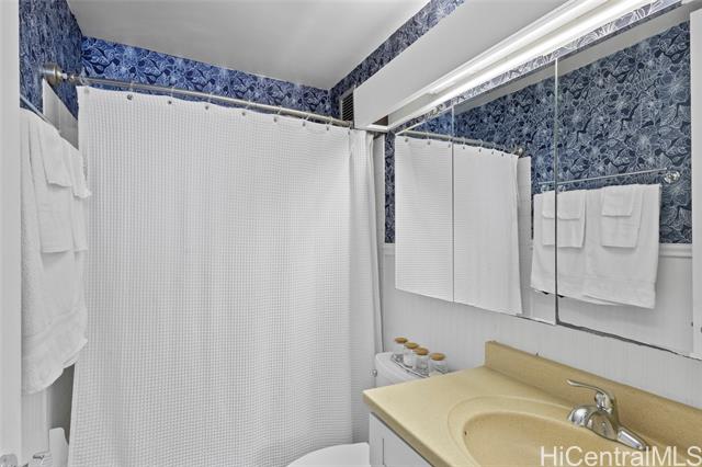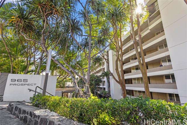 - Welcome to 965 Prospect St #404! This is a bright 2-bedroom, 2-bath residence offering abundant interior living space. Plus, a spacious lanai with breathtaking scenic views of Diamond Head, the ocean, sunsets, and Friday night fireworks from home. The kitchen was remodeled in 2023 and features new cabinets, granite countertops, and new appliances, including a full-size washer and dryer. The secondary bathroom was remodeled in 2023. It includes a totally rebuilt tile shower with a downspout and matching floor tile. The primary bedroom offers an en-suite bathroom with a full-sized bathtub. Also, the living room has updated laminate flooring and updated paint throughout the unit. Floor-to-ceiling sliding doors bring in natural light, and trade winds flow through the unit for comfortable cross-ventilation. The unit will be sold fully furnished and move-in ready with couches, chairs, kitchenware, and two flatscreen TV's (65" and 50"). The unit can be rented. The unit includes one covered parking stall, and residents enjoy amenities such as a swimming pool, BBQ deck, guest parking, live-in resident manager, pet-friendly, and secured entry. Conveniently located in beautiful Punchbowl.