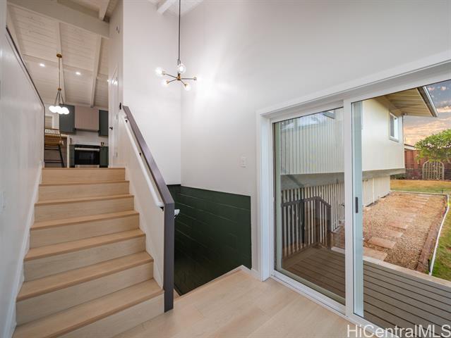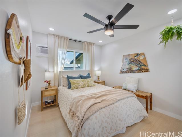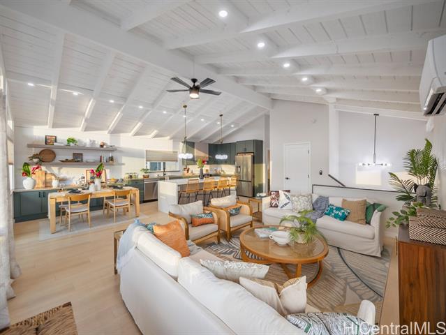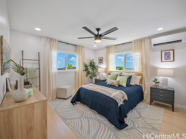 - Welcome to this beautifully updated 4-bedroom, 2.5-bath home in desirable Newtown Estates. Featuring the exclusive Lanikai Maple flooring from the Mauka to Makai collection, this home offers modern comfort with island-inspired charm. Enjoy high ceilings, a spacious living area with split AC, and window units in all bedrooms. The generous kitchen is equipped with brand-new stainless steel appliances, and dual-pane windows provide energy efficiency throughout. A welcoming lanai invites seamless indoor-outdoor living, perfect for relaxing or entertaining. Take in stunning harbor views from multiple vantage points in the home. Move-in ready and thoughtfully upgraded, this is a must-see property in a prime location.