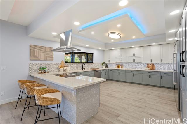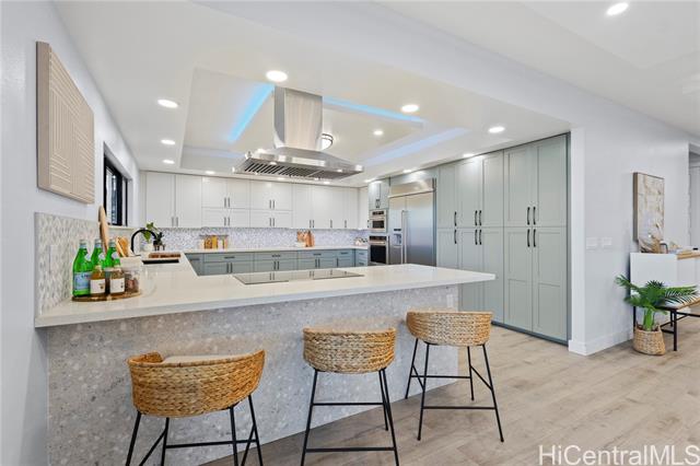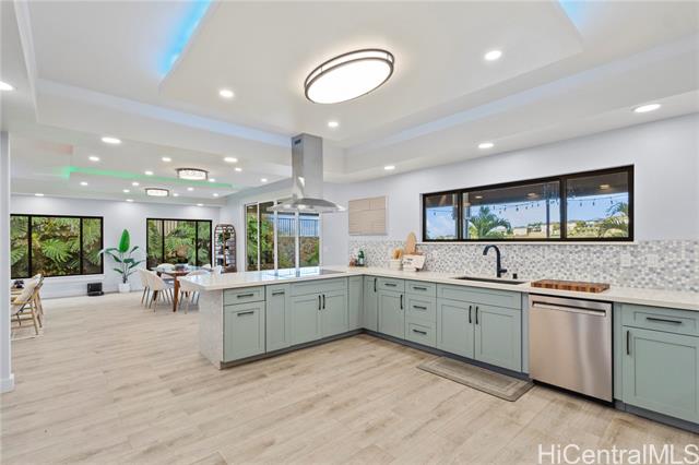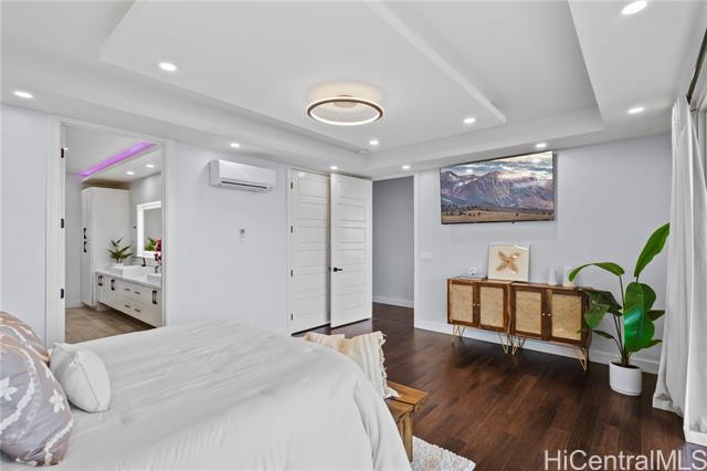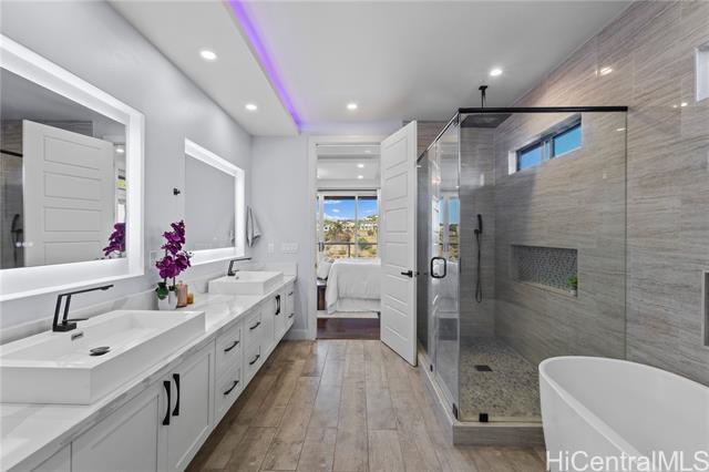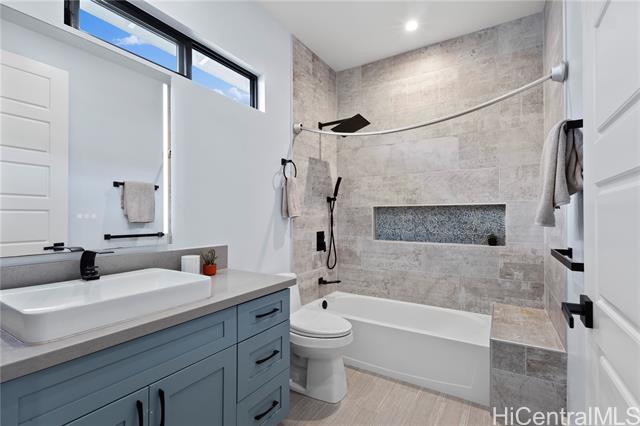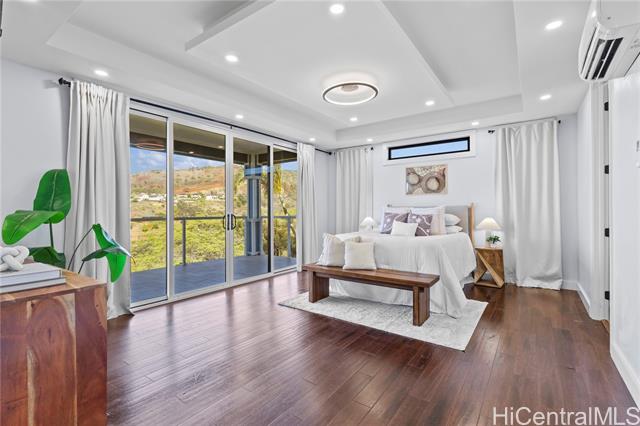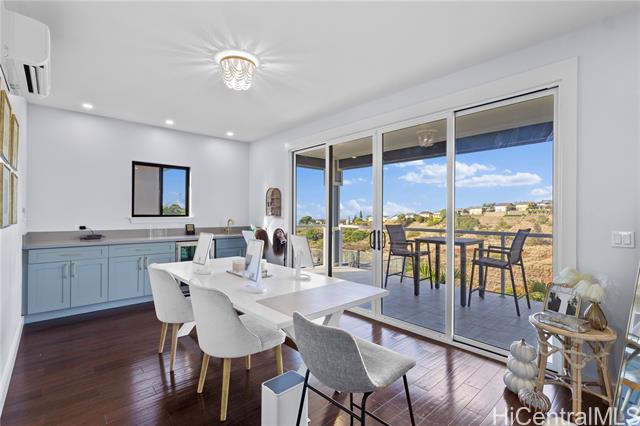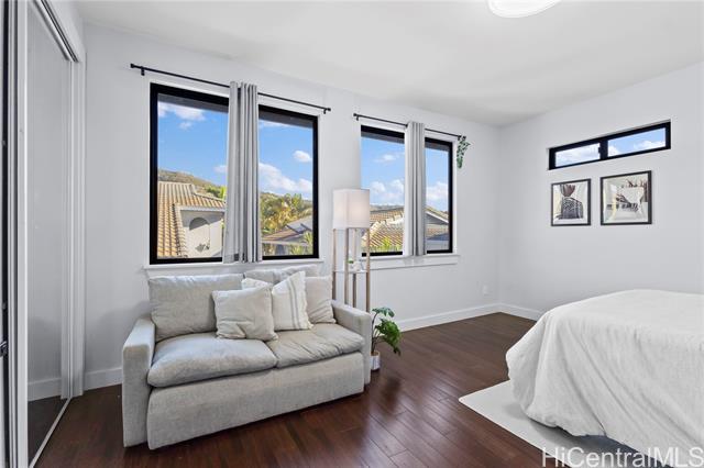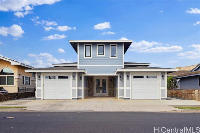 - Beautifully built in 2022, this expansive 6BD/6BA Makakilo home sits on a rim lot capturing sweeping city, coastline, mountain, sunrise & sunset views with cool year-round breezes. Open-concept living, dining, and kitchen feature quartz countertops, forced induction range, tile flooring on main level, hardwood upstairs, and 9-ft ceilings throughout. The home offers three full suites, including a downstairs suite with private entrance, full bath, and walk-in closet—ideal for multigenerational living, guests, or rental potential. Enjoy a second-floor balcony overlooking Makakilo Valley in a peaceful, quiet setting. Conveniently located near Makakilo Community Park, schools, shopping, and freeway access, yet tucked away for privacy. Modern, spacious, and thoughtfully designed.