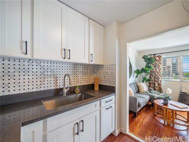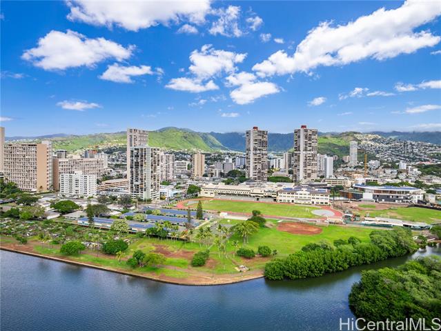 - Seller will accept $350K. Set just beyond the energy of Waikiki, this beautifully renovated two-bedroom residence at Ala Wai Cove offers a refined balance of comfort and quality. Thoughtfully updated with high-end materials, the interior features engineered hardwood flooring, a well-appointed kitchen with stainless steel appliances and granite countertops, and an upgraded bathroom with large walk-in shower. The layout feels both functional and inviting, designed for everyday living with a clean, modern aesthetic. Expansive windows and a spacious 93 square foot lanai frame views of the Ala Wai Canal, the ocean beyond, and the vibrant Waikiki skyline, creating a dynamic backdrop from morning to evening. Whether enjoying your morning coffee or winding down at sunset, the lanai extends the living space and invites in cooling island breezes. Conveniently located near Waikiki, Iolani School, the University of Hawaii, shopping, dining, and major thoroughfares, Ala Wai Cove offers easy access to the best of Honolulu while remaining comfortably removed from the crowds. There is an $85K assessment = $548.38 monthly, building is starting work on hot water, fire safety and waste drains.