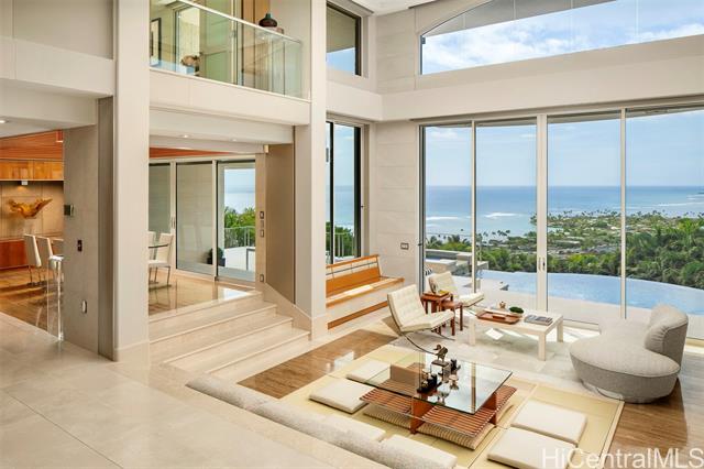 - Situated on one of the most desired lots in Hawaii Loa Ridge, Kaimana Hila o?ers complete privacy and unobstructed views of Diamond Head, the Pacific Ocean, and Honolulu’s coast from nearly every room. Designed by award-winning architect Je? Long, this residence combines resilient steel-and-concrete construction with interiors crafted by artisans known for their work on ultra-luxury yachts and couture boutiques. Exquisite details like Spinneybeck Italian leather walls, custom closets by Molteni & C Dada, and vein-matched travertine marble bathrooms showcase luxury at every turn. At its heart, a Pininfarina-designed kitchen with Snaidero cabinetry and Gaggenau appliances elevates daily living and entertaining alike. Outside, an expansive lanai with a saltwater infinity pool and hot tub, framed by lush landscaping and breathtaking views, creates a resort-style sanctuary. German-engineered hurricane shutters, a professional security system, and a gated community with 24hr security make this a true lock-and-go residence—o?ering unmatched luxury and refinement in Honolulu.