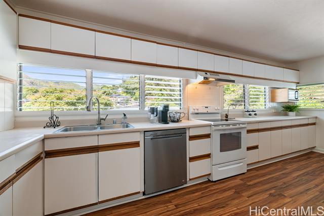 - Nuuanu Valley kama'aina home owned by the same family since it was built in 1968. Quiet and cool location near the mountain with relaxing views. Three bedrooms and two bathrooms upstairs plus the large kitchen! Freshly painted inside and out, new vinyl plank flooring upstairs. Downstairs living area has potential to be a separate long term rental. Two car garage plus driveway space. Located in the Nuuanu Elementary school district and close to hospitals, Oahu Country Club, shopping, dining, and public transportation.