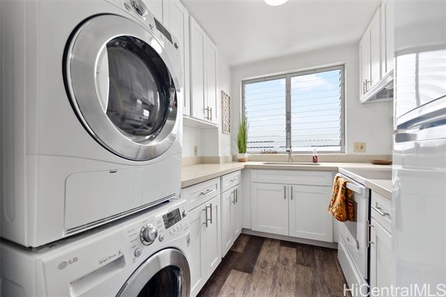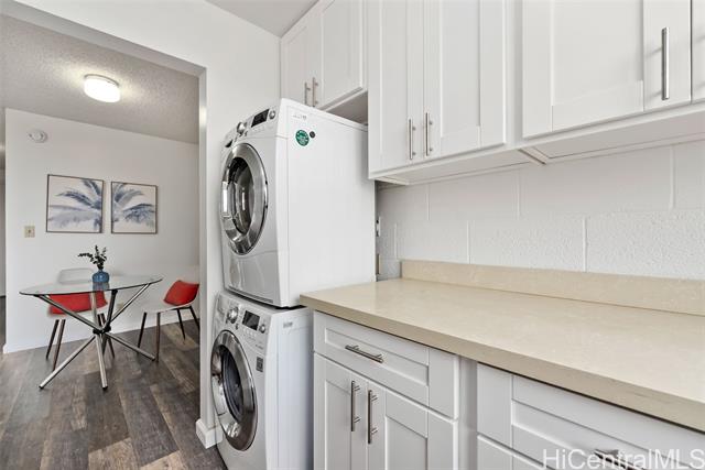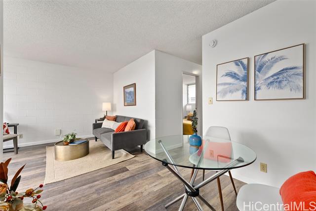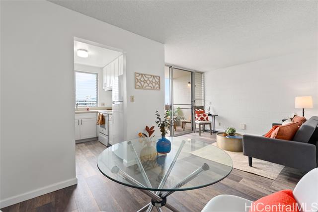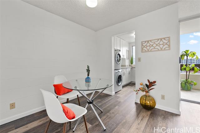 - Stylish, move-in ready top-floor 1bd/1ba/1pkg with a covered lanai + in-unit washer/dryer—an ideal starter home or turnkey investment. No unit above offers added privacy, plus better natural light and cooling breezes. Recent upgrades shine: new appliances, upgraded cabinetry, sleek countertops, and luxury vinyl flooring throughout. Light, bright, and spotless with city views, a comfortable layout, and a walk-in closet. Enjoy secured entry and secured parking, plus the convenience of an on-site resident manager. Pet-friendly building with low maintenance fees. Prime Honolulu convenience near freeway access and downtown—close to shopping, dining, and everyday essentials. Don’t miss this! Open House is Sunday, 1/18/2026 2-5pm