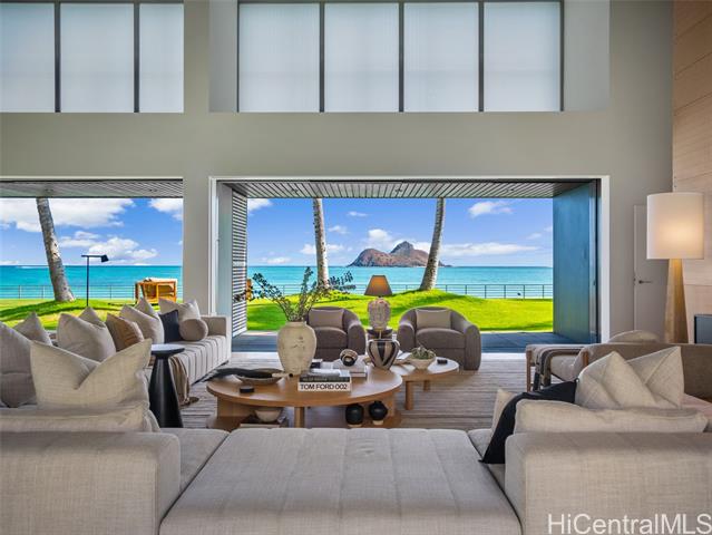- The Mokulua Estate is a breathtaking oceanfront sanctuary set within the prestigious Lanikai neighborhood. This exceptional property offers unobstructed views of the Mokulua Islands from nearly every vantage point. With over 150 linear feet of ocean frontage and a private gated entrance, the estate provides an ideal blend of seclusion, security, and harmony with its natural surroundings. Encompassing more than 10,000 square feet of refined indoor/outdoor living space, this state-of-the-art residence, designed by award winning architect Jim Jennings showcases dramatic ocean and mountain vistas throughout. A guest house and caretaker’s quarters ensure ample accommodation for family and guests. Direct ocean access from the backyard invites an active island lifestyle, from swimming and snorkeling to kayaking, surfing, fishing, or simply relaxing by the pool in your own tropical paradise. This is a rare, Once-In-A-Lifetime offering you won’t want to miss!!