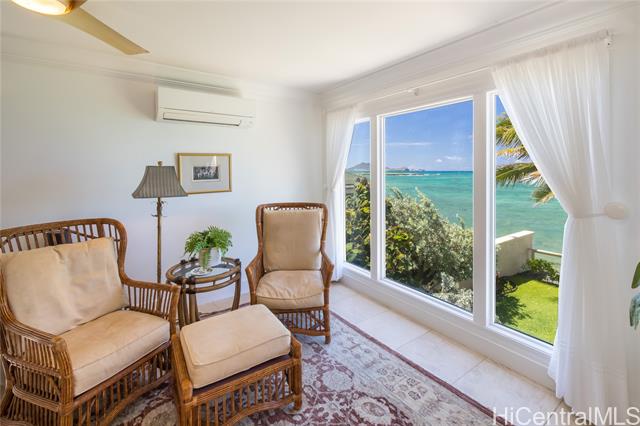 - Villa Soluna, highly motivated seller - make us an offer on this stunning, gated Mediterranean oceanfront home in Lanikai, designed and built by Jeff Long. Situated along the pristine turquoise waters of iconic Lanikai Beach, this residence offers captivating views of kite boarders, kayakers, and outrigger canoes passing by the renowned Mokulua Islands. The impressive two-story layout features soaring ceilings and windows that bathe the home in natural light. A contemporary chef’s kitchen with panoramic ocean vistas makes meal preparation a pleasure, while the serene primary suite upstairs includes a private den, a new soaking tub, a separate steam shower, and private lanais. Outside, enjoy memorable dinners under the stars or take a quick walk to Mid-Pacific Country Club or Buzz's for a local evening out. This well-built, easy-to-maintain residence is ideal for both full-time residents and seasonal escapes; simply close the gates to immerse yourself in your own private paradise. Recent upgrades include new AC units, a freshly painted interior, a new solar water heater, sound tile roof, permitted seawall, Egyptian limestone floors and is move in ready.