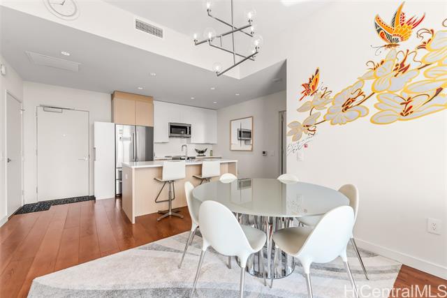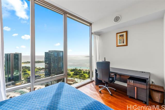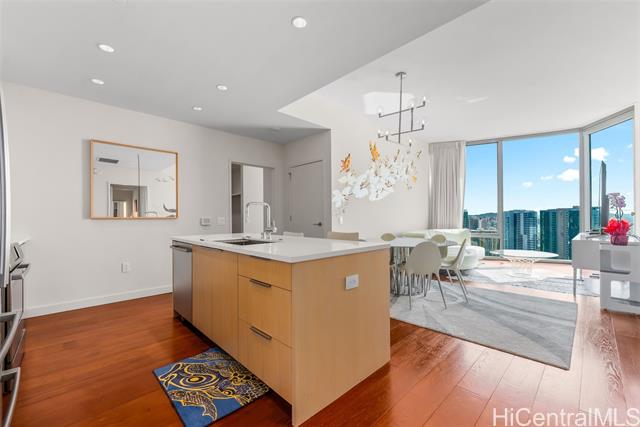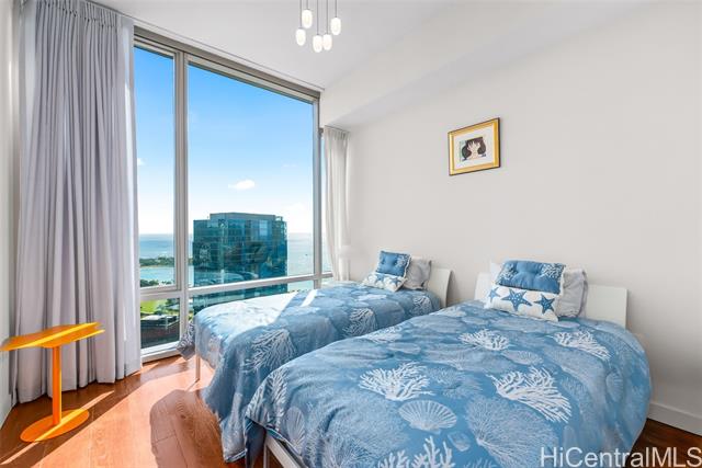 - BEST VALUE & LARGEST 2-Bedroom 08-Stack Penthouse-Level Residence in Ae'o. Located on the preferred Diamond Head side, this penthouse-level home offers PH higher ceilings and a noticeably more open, premium feel. One of only a limited number of 2-bedroom residences built at 1,092 sq ft, #3908 provides meaningfully more living space than other penthouse 2BR offerings currently on the market. Floor-to-ceiling windows frame ocean, coastline, city, mountain, and sunrise views while capturing cool tradewinds and balanced natural light throughout the day. The well-designed split-bedroom layout features a contemporary kitchen, quartz countertops, and Bosch appliances, along with quality wood flooring throughout living areas and bedrooms, motorized window drapes, Toto washlets, and central A/C. Two parking stalls, featuring a secure mezzanine stall and a convenient fourth-floor stall, plus a large deeded storage room nearby. Ae'o offers resort-style amenities, pet-friendly, and direct private access to Whole Foods, all in the heart of Ward Village near Ala Moana Beach Park, shopping, dining, and entertainment.
