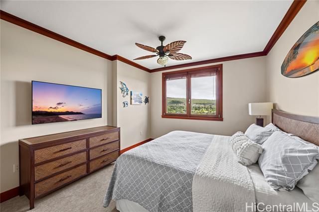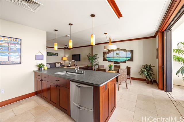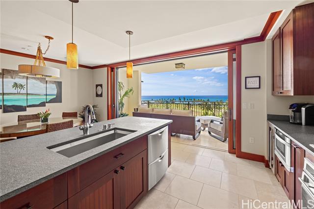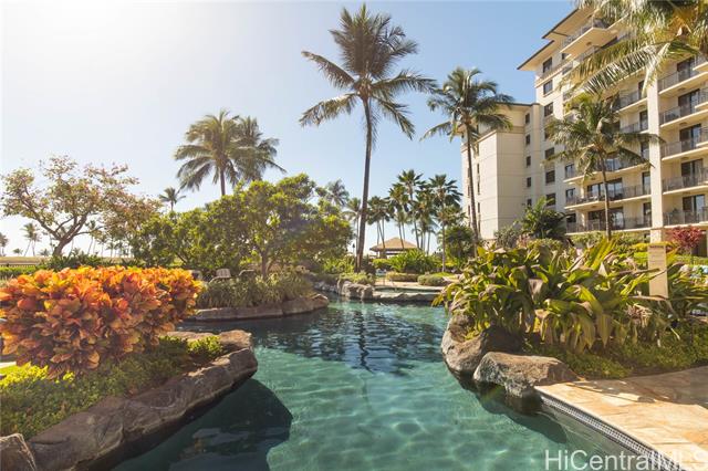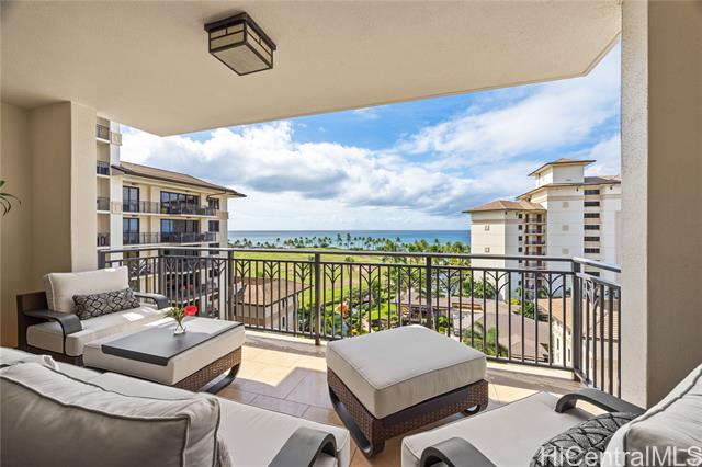 - Enjoy stunning ocean and sunset views from the living room, kitchen, and private lanai with new furniture, this is island living at its finest. Introducing a beautifully maintained, never-before-rented 2-bedroom, 2-bath residence, with bedrooms overlooking peaceful golf course views that create a serene retreat from the day. Perfectly positioned as a center unit between the two towers, this residence offers enhanced privacy and maximized ocean views. With only two units per floor sharing the elevators closest to the parking garage, the layout provides a rare sense of exclusivity and convenience. A conveniently located covered parking stall is included. Eligible for vacation rental use. See agent remarks regarding process. Resort-style amenities include multiple pools, spa, sauna, fitness center, koi ponds, BBQ areas, an oceanfront bar with live music, and direct beach and lagoon access. Ideally located near Ko Olina’s famed lagoons, championship golf, dining, and shopping, this is a rare opportunity to own a private ocean-view retreat in one of O?ahu’s most coveted resort communities.