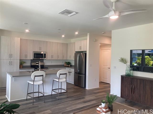 - Brand new construction at Ka'ulu By Gentry! This beautiful 2 bed, 2.5 bath home has a large open kitchen, living and dining area and a massive 2 car garage. Upstairs are 2 bedrooms both with in-suite baths. 9' ceilings, Designer cabinets, Hi-mac counters, Kohler fixtures and so much more! The energy saving features include Central AC, Seer2 (16+), 80 gallon solar hot water tank,spray foam insulation, LED lighting, Digital thermostat, Insulated garage door, EV ready, Low-E vinyl windows and Energy star stainless steel appliances. All appliances are included! Flooring is Luxury Vinyl Plank throughout. The seller is offering a 3% credit to be used for closing costs or to buy down points/interest rates. Our community is in a fabulous location, close to beaches, shopping, entertainment the freeway and so much more! BUYERS AGENT MUST ACCOMPANY BUYER ON THEIR FIRST VISIT TO THE MODEL HOMES.