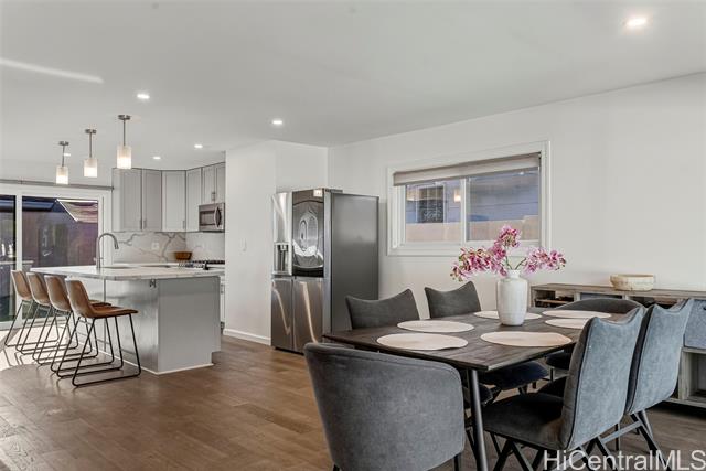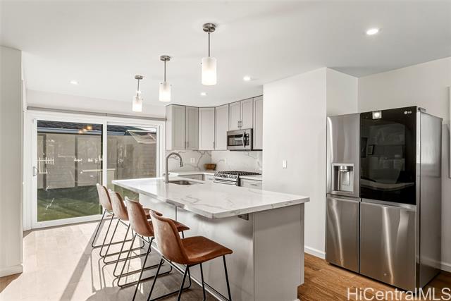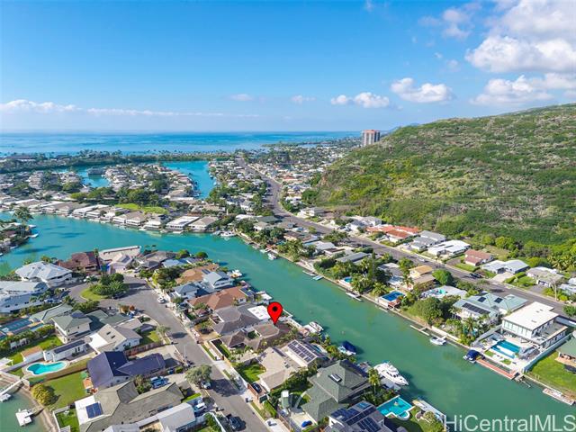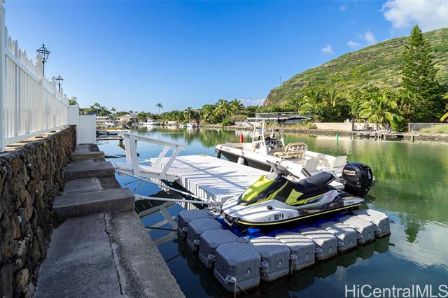 - Come see this single level marina front home in the highly desirable Spinnaker Isle community of Hawaii Kai. Positioned on one of the best lots in the neighborhood, this property offers a rare combination of privacy, security, and direct marina access with a private boat dock, ideal for boating, paddleboarding, and true waterfront living. Designed like a private compound, the home is set behind a striking rock wall with a powered gated entry leading into the carport courtyard, followed by a second gated entry that opens to an expansive, usable outdoor space before reaching the front door. This thoughtful layout creates a strong sense of separation, security, and tranquility rarely found in marina front communities. Inside, the home features a spacious open floor plan with high vaulted ceilings, large windows, and abundant natural light throughout. The living area flows seamlessly to a generous marina front patio, perfect for entertaining or enjoying the indoor outdoor lifestyle. A complete renovation in 2019 included a redesigned kitchen and appliances, updated flooring, split air conditioning systems, and more. A rare opportunity in a tightly held waterfront enclave.