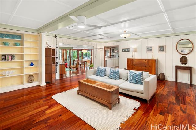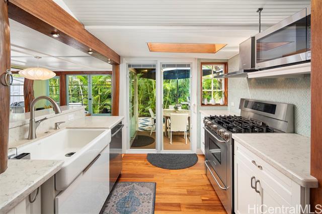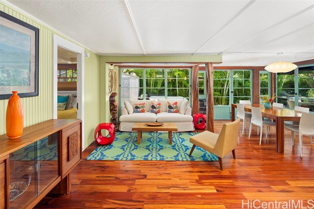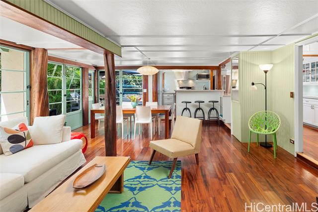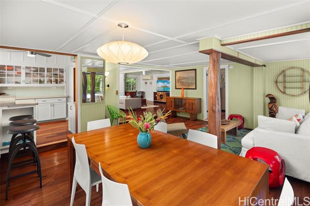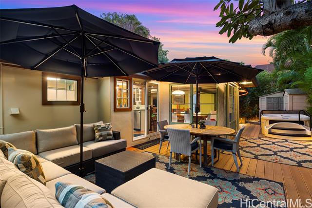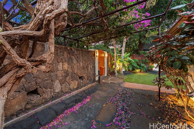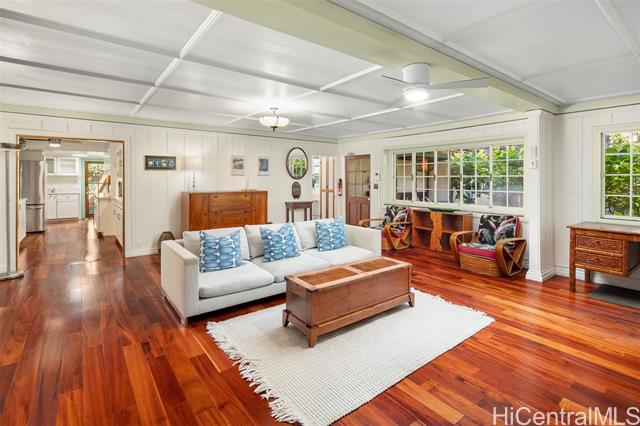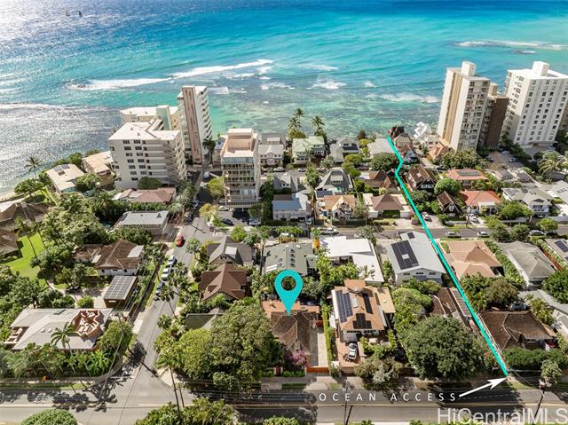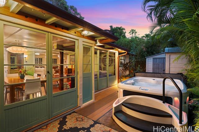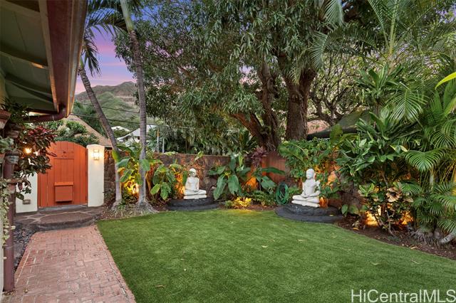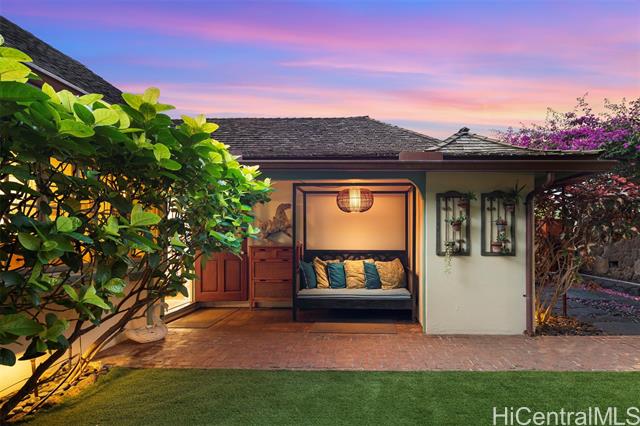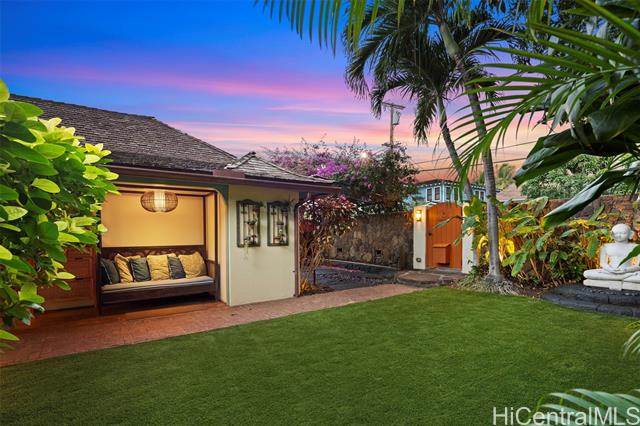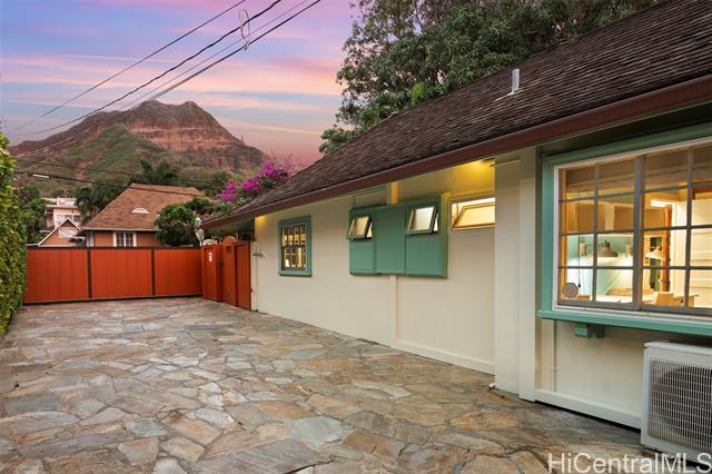 - Location, Location. This classic, vintage inspired island residence is ideally situated just minutes from your favorite surf spot and has been lovingly cared for and beautifully maintained. Lush landscaped grounds w/ tropical palms & flowering trees welcome you into a private courtyard, setting the stage for this storybook 3-bedroom, 3-bath home rich in charm and character. An inviting open floor plan features hardwood floors and timeless architectural details including board and batten and beadboard accents, Ohia posts, and charming period glass pane windows and doors that fill the home with natural light. The kitchen offers fresh white cabinetry, stainless steel appliances, a large farmhouse sink, abundant wraparound counters, and glass door upper cabinets ideal for displaying cherished china. A rear palm lined patio provides a peaceful setting for relaxation w/ a freestanding hot tub, lounge area & BBQ space. Modern comforts include split air conditioning throughout, with the added privacy of a fully walled and gated property and open parking for 2 to 3 cars. Ideally located near ocean access, Kapiolani Park, Kaimana Beach, Waikiki, and shops & café’s along Monsarrat Avenue.
