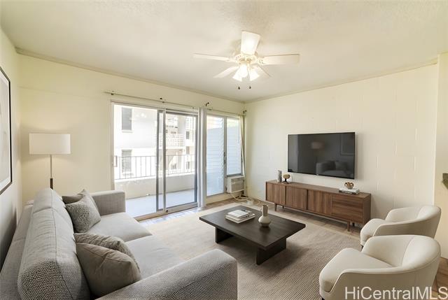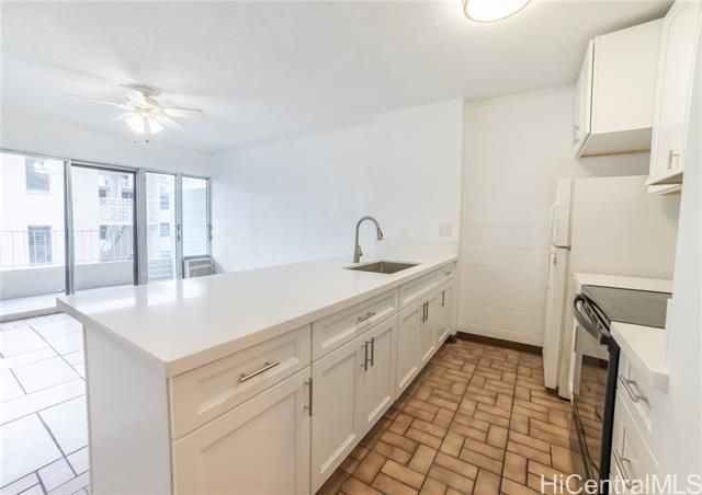 - NEWLY renovated as of January 2026! Welcome home to Makiki Wind Apartments! Here is your opportunity to own a spacious 1 bedroom x 1 bathroom unit in the heart of Makiki! Renovated with NEW open Quartz Kitchen, NEW Bathroom, and NEW Interior Paint. This home is the perfect starter home or investment property. Enjoy an open + spacious lanai with built-in storage for added convenience. The unit includes a spacious + partially covered parking stall located right next to the main entrance for easy access. The building also offers secured key entry, an elevator, and community laundry area on the 1st floor. LOW monthly maintenance fees covers: cable TV, internet, water, sewer, and common area expenses. Property to be sold in AS-IS condition.