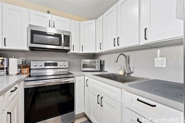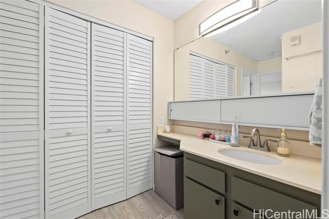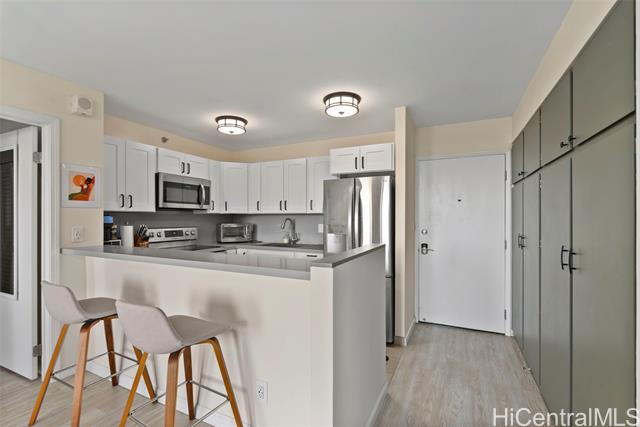 - Conveniently located on a low floor on the preferred side, this 1bedrm, 1 bath condo at Pearl Regency has a lanai overlooking the neighborhood. Meticulously kept and recently renovated featuring smooth finished ceilings, AC, ceiling fan, vinyl plank flooring, fully upgraded kitchen with new cabinetry, quartz countertops, stainless steel appliances, and a glazed shower. Enjoy the convenience of an in-unit front load washer/dryer, an assigned parking stall, car wash area, & additional storage. Pearl Regency is a pet friendly well-maintained high-rise community, hurricane insured, fire sprinklers, 24-hr security on site, and generous guest parking. Amenities include a pool, kiddie pool, jacuzzi, tennis court, playground area, exercise room, clubhouse, BBQ area, and pavilion- perfect for entertaining or relaxing. Additional bike, surfboard storage, and motorcycle parking available. Located near Pearlridge Shopping Center and Pali Momi Medical Center, bus route, minutes from Pearl Harbor, Hickam AFB, airport, dining, schools, and freeway access. Don't miss your chance to live in comfort, style, and convenience in the heart of Aiea!