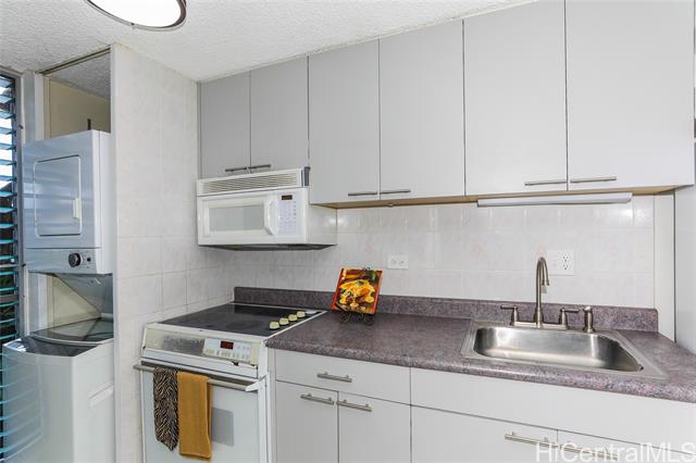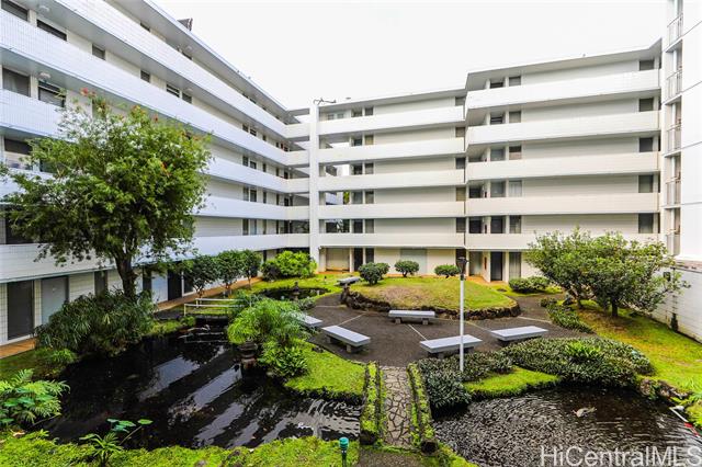 - Tucked away in the peaceful & cool community of Kunawai Terrace in Nuuanu, this inviting 1-bedroom, 1-bathroom condo offers a perfect blend of comfort and convenience. Filled with natural light, the unit features an open layout connecting the living, kitchen, and bedroom areas. Large sliding doors lead to a lanai with shutters, ideal for enjoying serene views of the koi pond and the historic Kunawai Springs—once viewed by ancient Hawaiians as a healing center. The layout offers flexibility, with sliding doors that allow you to easily close off the bedroom for added privacy. Additional highlights include built-in shelving, newer stackable washer and dryer, and 1 assigned parking stall in gated garage. Enjoy on-site amenities such as a pool, BBQ area, seating spaces, and koi pond, plus a neighborhood park with a basketball court and jungle gym directly across the street. Conveniently located near downtown Honolulu, shopping, dining, beaches, parks, and transportation. Ideal for first-time buyers, investors, or those seeking a peaceful place to call home.