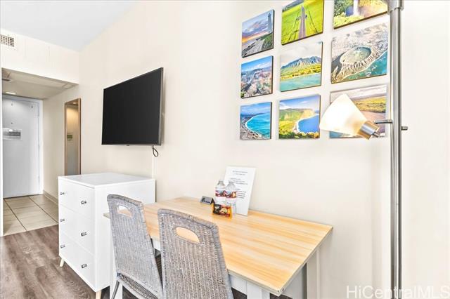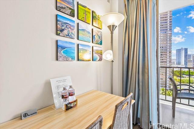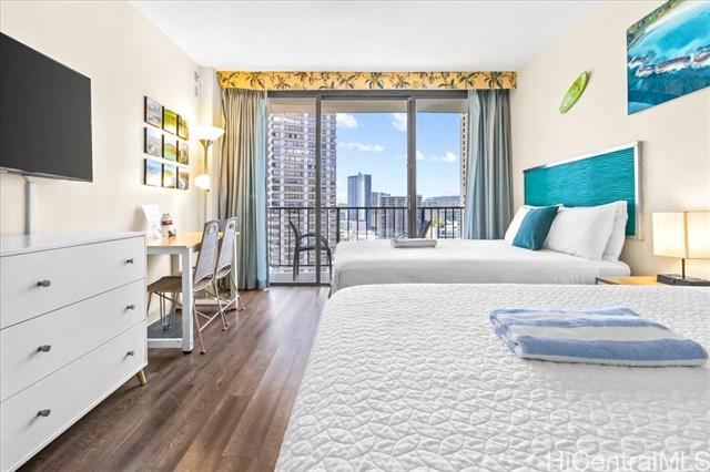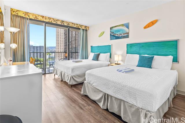 - Welcome to Palms at Waikiki - where island elegance meets unbeatable convenience in the vibrant heart of Waikiki! Perched on a high floor with expansive city skyline and mountain views, this beautifully appointed and fully furnished turn-key studio offers an incredible opportunity for legal short-term rental or personal retreat. Unwind on your private lanai surrounded by island charm and enjoy the coveted convenience of ONE RARE DEDICATED OVERSIZED PARKING STALL located on the ideal second level — an exceptional find in Waikiki and ideal for both guests and owners! Enjoy amenities including a sparkling pool, fitness center, BBQ area, laundry facilities, and 24-hour front desk. Just moments from Waikiki Beach, Ala Moana Center, and world-class shopping and dining. Don’t miss your chance to own a piece of paradise with unmatched flexibility, great income potential and prime location!