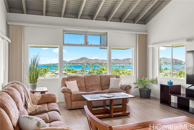 - Amazing ocean view home in the highly desirable Lilipuna neighborhood! This architecturally built residence is custom designed with four bedrooms and a spacious living room that overlooks Kaneohe Bay. The main living room boasts soaring cathedral ceilings, two cozy reading lofts, and an abundance of natural light that enhances the clean, bright interiors. Enjoy direct ocean views from all the main interior spaces, including the living room, dining area, kitchen and primary bedroom. Enjoy a meditative moment to yourself every morning with a fresh cup of coffee, a sunrise and a cool ocean breeze, all made possible by the well-positioned covered lanai. The large and level yard is a pet-owners dream. Brand new LVP runs throughout the home, while the exterior showcases timeless architectural appeal with real stucco construction and a solid foundation. Parking is a breeze with a two-car enclosed garage, plus two additional spots just outside the garage doors. Conveniently located near Kaneohe Marine Corp Base, Windward Mall, Kaneohe town, and major highways (H-3 and Likelike) for quick access to Honolulu and the airport. Front row seats to the Blue Angels when they are in town!