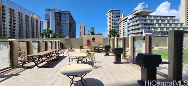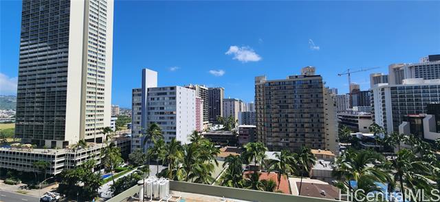 - Fee simple 1 bedroom, 1 bath unit with 1 assigned covered parking stall in the heart of Waikiki! Popular building on Kuhio Avenue with lots of amenities. Easy access to soo many conveniences and near access to the beach. East facing unit offers sunrises and cool comfortable living! Enjoy city views from your lanai. Unit features upgraded bathroom, vinyl plank flooring in the living area, window air conditioner, ceiling fan and more!