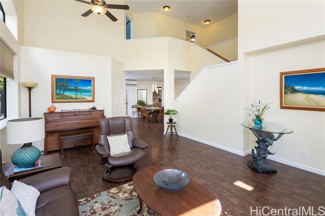 - Multi-Gen in Mililani Mauka | Lock-off Style Privacy | Owned Solar (NEM) Flexible living areas can be separated or connected by opening/closing a door. The exceptional addition completed in 2017 and a full home refresh in 2025. Lives as one home or as multiple private living areas with separate entrances. Set on a cul-de-sac with a private, gated yard. The upstairs primary suite has high ceilings, walk in closet, ensuite and a peaceful, private lanai. On the main level an additional primary suite has the flexibility to be it's own suite or attached to the additional studio style living area with a private entrance, bath and convivence area or incorporated in the main house. A private 2nd story 2-bedroom wing includes it's own W/D, frige/snack area. Energy upgrades: 39 owned PV panels with highly coveted NEM program, split A/C in every room, attic fans and insulation throughout. Ample parking. Mililani has 7 rec centers with pools, courts, playgrounds and other amenities. The community enjoys sidewalks, dog friendly vibe, streetlights and nearby shopping, it cant' be beat! With its size, layout upgrades and flexibility this home represents exceptional value, see it before it's gone!