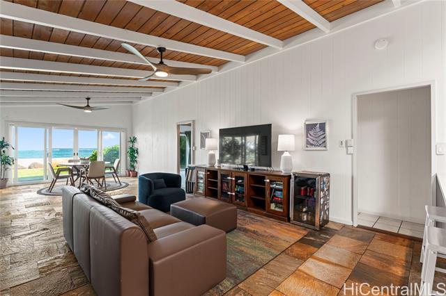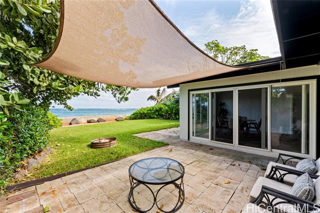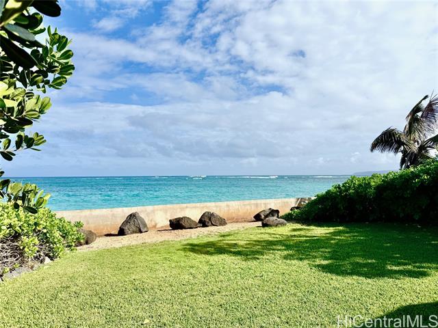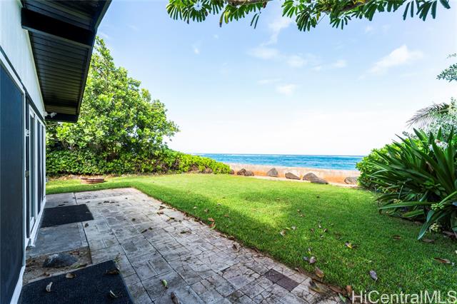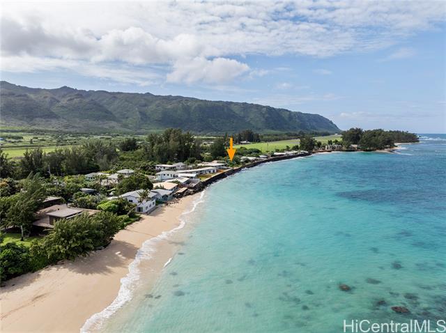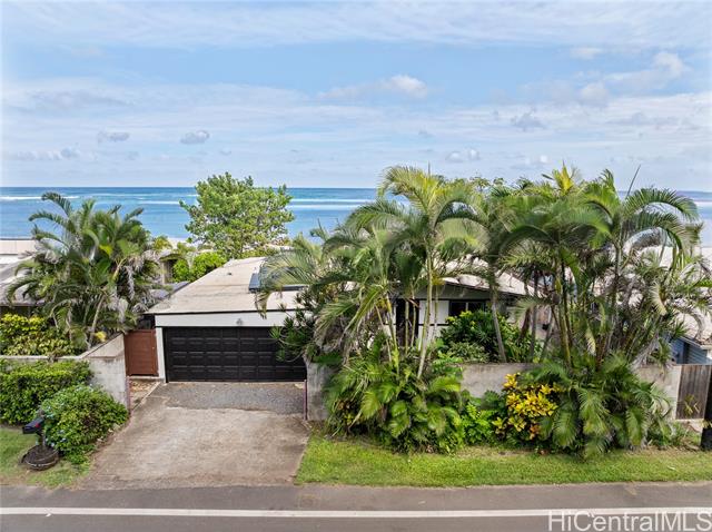 - Gorgeous ocean front single family home with AC, large grassy yard, garage, permitted sea wall, bonus room, and firepit. If you dream of ocean front living in the country this is your chance! One of the lowest priced ocean front properties on Oahu's North Shore with three bedrooms, two bathrooms and large bonus room/enclosed porch. This open concept home is single level and could be your forever home in paradise! Bonus room is large enough for a pool table, hot tub, home gym, home office, entertaining or relaxing with the sounds of the ocean. Sandy beach is present in the summer time with gorgeous surf in the winter. Solar hot water heater and upgraded kitchen with newer appliances also save electricity. Enjoy the backyard fire pit and grassy yard to view both sunrises and sunsets depending on the time of year. Furniture negotiable. Fresh exterior and interior paint October 2024. Solid wood cabinets refinished and composite stone countertops added in 2023. Cool tile floors throughout as well as light colored roof coating keep this home cool. *See our virtual tour, 360 walk through and drone videos. *Seawall permit numbers 755584 & 684164. Buyer and agent to do due diligence.