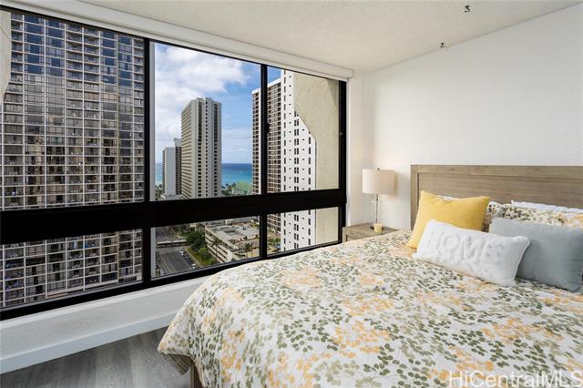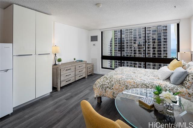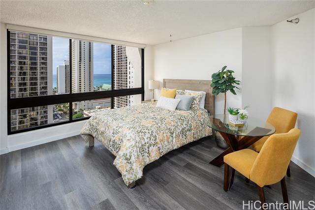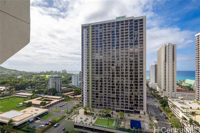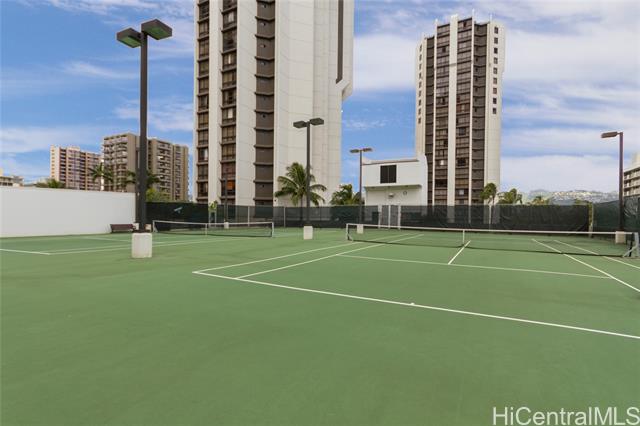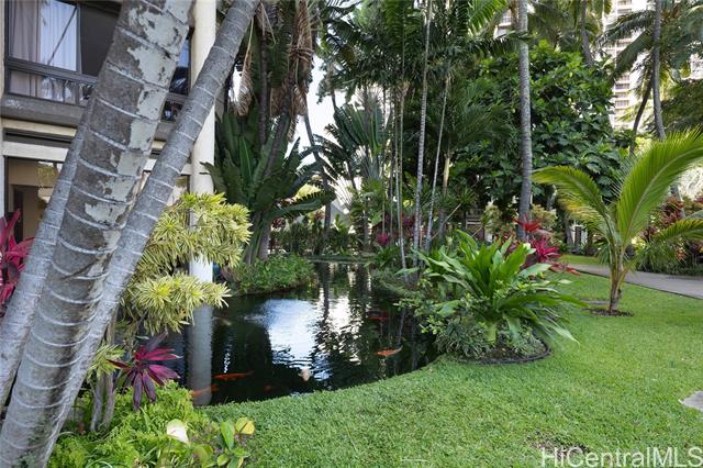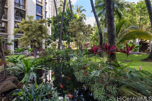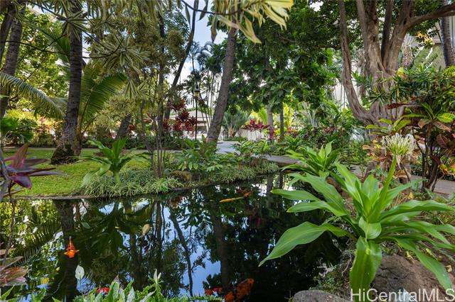 - Stunning high-floor studio in the Queen Tower of Liliuokalani Gardens with ocean and Waikiki views. Nestled within award-winning tropical gardens spanning over two acres, the resort-style community offers a koi pond, pool, spa, pavilion, BBQ areas, rooftop lighted tennis and pickleball courts, and 24-hour security. Enjoy central AC, secured bike and surfboard storage, and convenient coin-operated laundry with lounges. The unbeatable location at Waikiki’s Diamond Head end is steps from beaches, shopping, dining, parks, golf, the zoo, aquarium, and city transit. Assigned secured garage parking is guaranteed for $300/year. Experience true aloha living surrounded by lush grounds and extensive amenities in this exceptional studio—perfect for first-time buyers or investors. A must-see gem in a prestigious, secure building with a welcoming community and resort comforts. Don’t miss this unique opportunity to live in paradise!