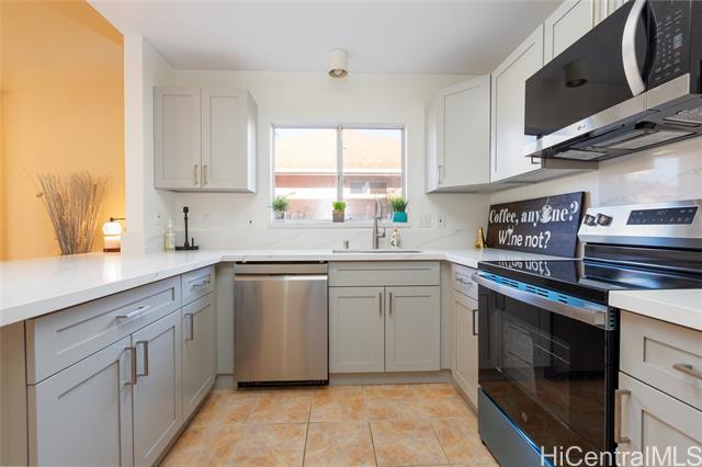 - Partly renovated corner home at Tropics at Waikele with vaulted ceiling featuring brand-new kitchen cabinets, new appliances, updated GFCI, quartz countertops, new laundry sink with valves and faucet and updated plumbing and electrical! Bathrooms refreshed with reglazed tubs, new fixtures, lighting and vanity in one of the bathrooms. Major upgrades includes new PEX plumbing, new shut off valve, 3 new AC units and exterior stucco repair and paint. Schedule a showing and bring your trusted agent to explore this fantastic opportunity and see the potential of this property!