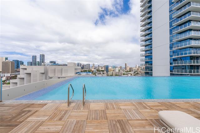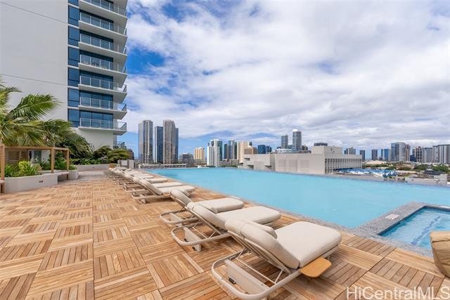 - BEST HIGH-FLOOR VALUE!!! One of the best-priced high-floor 1-bedroom residences in The Park on Keeaumoku. Liona #3607 is a brand-new, never-lived-in unit, offering immediate enjoyment of modern high-rise living. This residence features Diamond Head, sunrise, city, and partial ocean views, complemented by floor-to-ceiling windows that maximize natural light and views, along with a private lanai. The open-concept layout is finished with luxury vinyl plank flooring, quartz countertops, modern cabinetry, sleek stainless steel appliances, LED medicine cabinets, and a quiet, energy-efficient split AC system. Resort-style amenities include an infinity pool, spa, fitness center with sauna and yoga room, movie theater, BBQ pavilions, and 24/7 security. Pet-friendly, with one secured, covered parking. This home is an ideal blend of luxury, convenience, and modern urban living. A few photos have been virtually staged(enhanced).