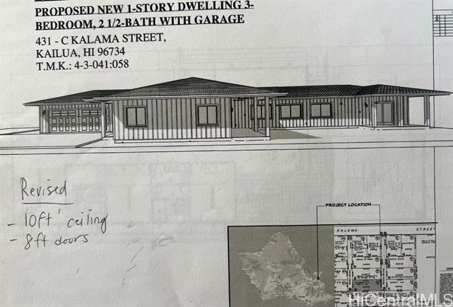 - PLEASE READ CAREFULLY. Have you been looking for just the right property and haven't found it yet? Take advantage of this UNIQUE & RARE opportunity to build a custom home with a the finishes you desire. This listing is for a vacant 6250 sqft. lot in the heart of Kailua within close proximity to Kailua Beach. It comes with DPP APPROVED PLANS for a single family residence consisting of a 3 bdrm, 2.5 bath, enclosed garage, driveway, and multiple covered lanais to enjoy the outdoor spaces. The custom home design seamlessly blends the Kailua Beach community vibes with luxury features such as 9 foot ceilings and custom doors to name a few highlights. The permit HAS NOT BEEN ISSUED yet, leaving you the ability to revise plans if desired without having to create a new permit which currently is taking WELL OVER a year to obtain. Lot does offer ADU potential for the Akamai Buyer. Renderings showing here are for general reference. Plans will be included for review during escrow and delivered at closing. Call your Contractor, skip those long lines at DPP and create a stellar home. Property has 2 deeded shared access roads off Kalama St. Please do not go on property without an appointment.